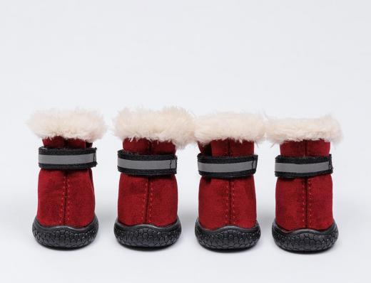 Petmax Ботинки с мехом для собак, M, малиновые