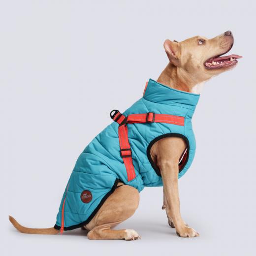 RunGo Попона теплая со шлейкой для собак, длина спины 50 см, объем груди 67-76 см, голубая