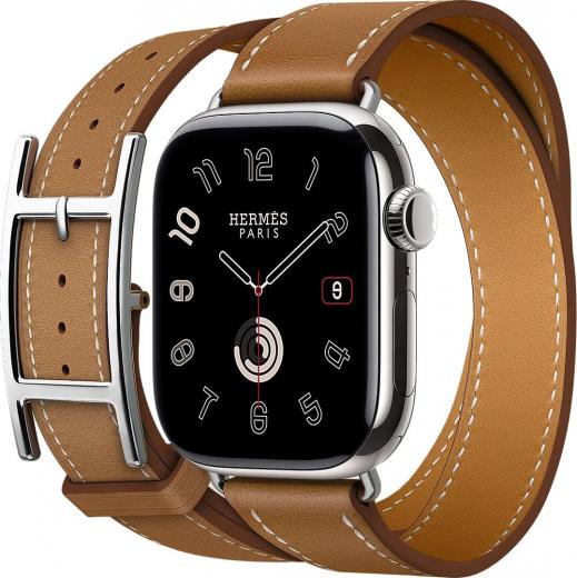 Смарт-часы Apple Watch Hermes Series 10 42 mm Natural Titanium Case with Gold Attelage Double Tour