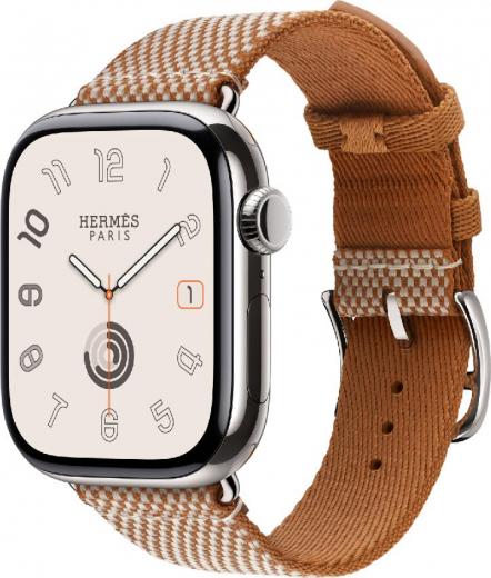 Смарт-часы Apple Watch Hermes Series 11 42 mm Natural Titanium Case with Gold/Ecru Toile H Single Tour