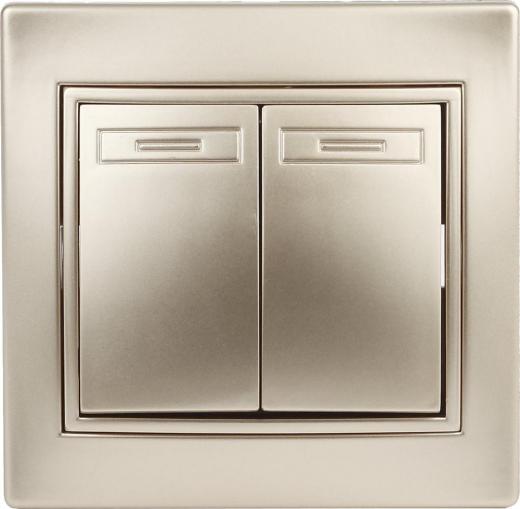 Intro 1-107-04 Переключатель Plano 1-107-04 двухклавишный, 10А-250В, IP20, СУ, шампань, цена за 1 шт