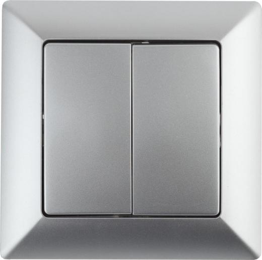 Intro 4-107-03 Переключатель Solo 4-107-03 двухклавишный 10А-250В, IP20, СУ, алюминий, цена за 1 шт